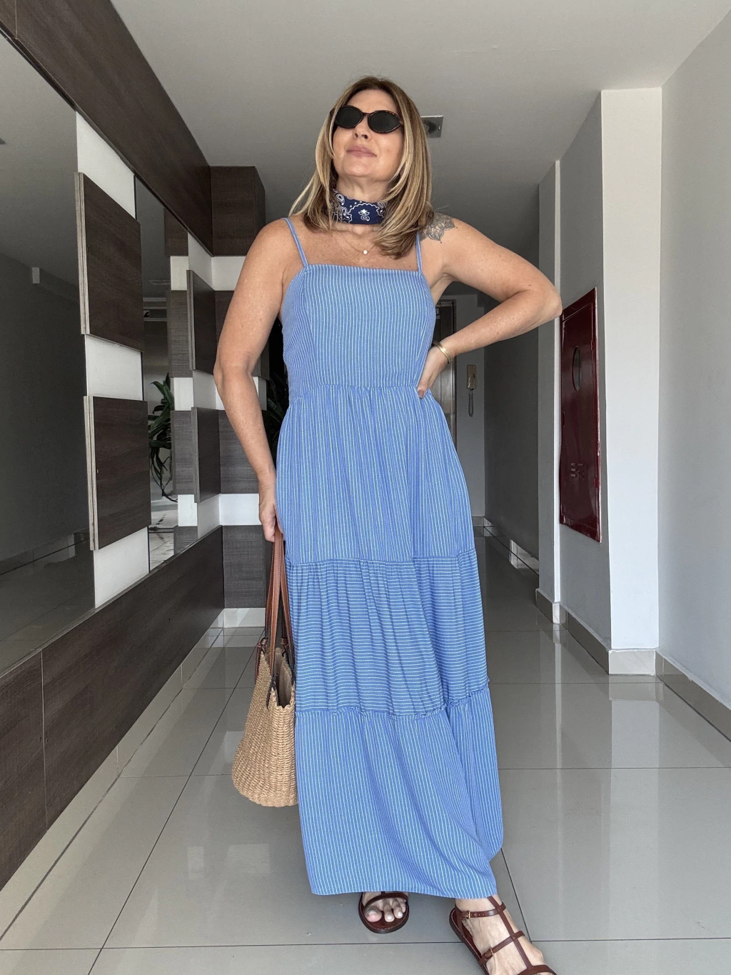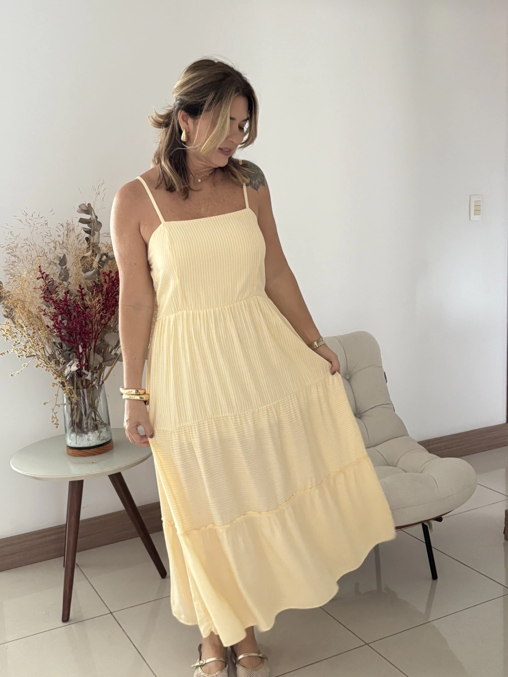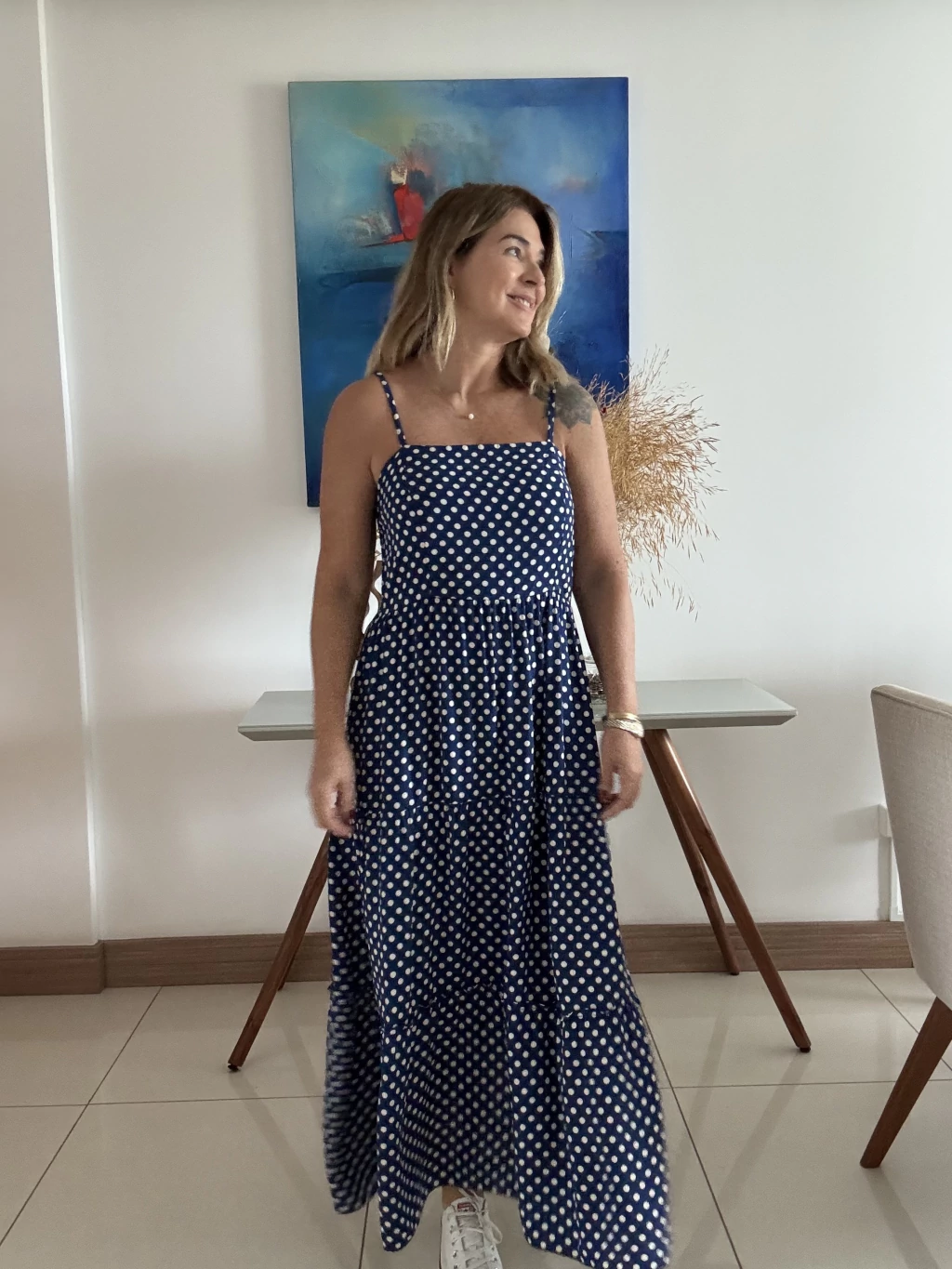 Um clássico atemporal para acompanhar o seu dia a dia com elegância e leveza. Com busto quadrado, alças reguláveis e lastex nas costas, o vestido se ajusta perfeitamente ao corpo, garantindo conforto e caimento impecável. A saia com dois babados traz movimento e um toque romântico para a peça.